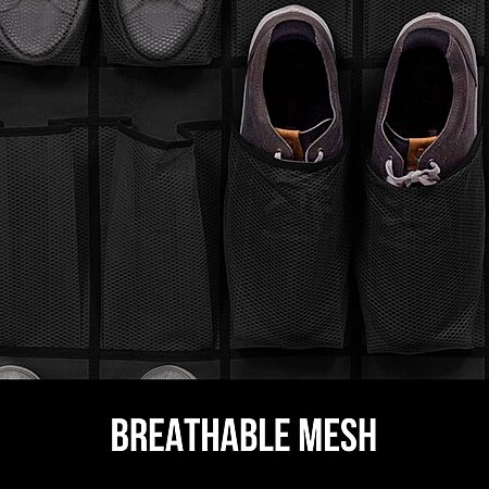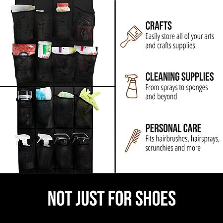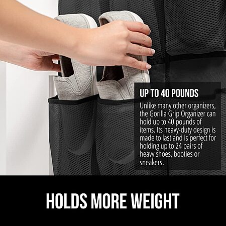 $11.99*:GORILLA GRIP Over the Door Shoe Organizer, 24 Large Breathable Mesh Pockets, Space Saving Hanging Storage Holder, Closet Rack Hanger Holds Up to 40 lbs , Black