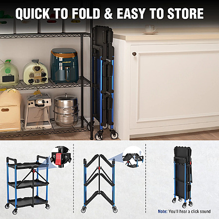 Model: WORKPRO 3-Tier Folding Collapsible Service Cart with Wheels, 210 Lbs Loading Capacity, Foldable Rolling Utility Cart for Garage, Warehouse, Home, Restaurant, Office