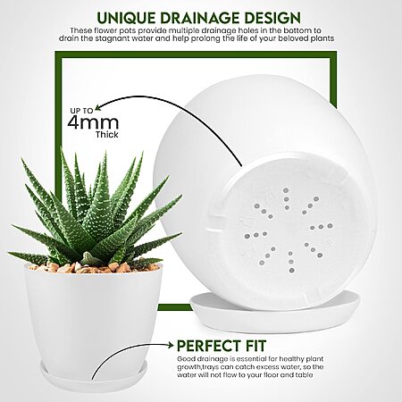 - Multiple Sizes – This nursery plant pots indoor comprises multi-size pots – Extra Large (7" W x 5.9" H), Large (6.6" W x 5.4" H), Medium (6" W x 5" H), Small (5.3" W x 4.4" H), and Extra Small 4.8"W x 4" H. Also comprises of matching saucers.