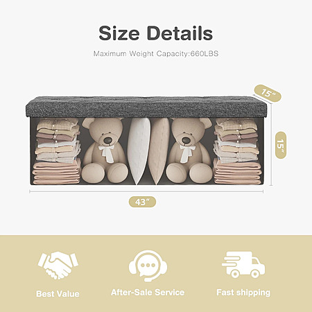 43" EDX Multi-Functional Folding Storage Ottoman Bench (Grey) $28.99 + Free S&H w/ Walmart+ or on $35+