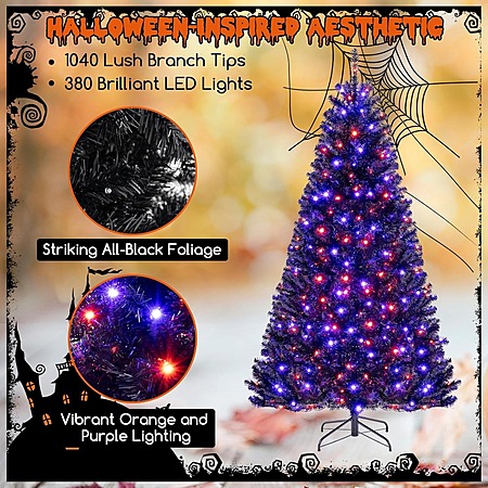 7' Pre-Lit Black Christmas Tree w/ 380 Orange & Purple LED Lights $54.59 + FS