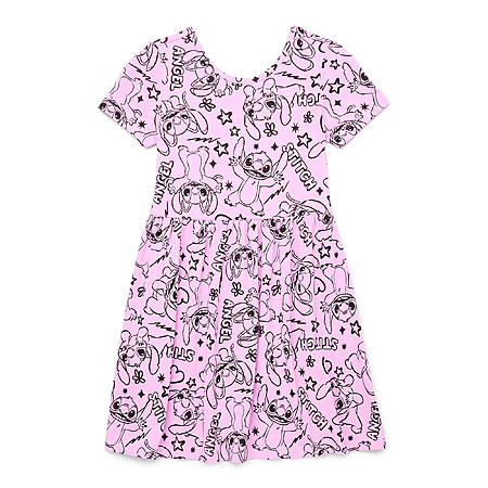 Playful Design: Adorned with an allover Stitch print and a gently gathered waist, this skater dress offers a fun and zany aesthetic.