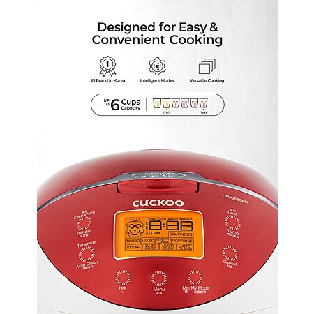 CUCKOO 6-Cup Micom Rice Cooker w/ Fuzzy Logic Technology (Red, CR-0655F) on sale for