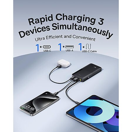 Model: Baseus Portable Charger, 10000mAh Fast Charging Power Bank, 22.5W PD3.0 QC3.0 Battery Pack Built-in USB C Braided Cable, Travel Essentials Portable Phone Charger for iPhone 17 16 15, iPad, S25/S24