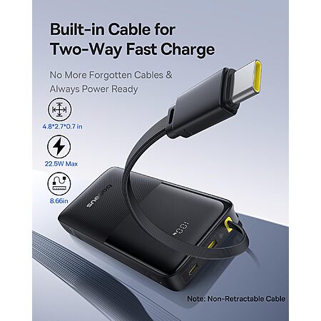 Baseus Portable Charger, 10000mAh Fast Charging Power Bank, 22.5W PD3.0 QC3.0 Battery Pack Built-in USB C Braided Cable $17.09