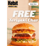 Free Teriyaki Char Burger [habitburger.com] with $8 Purchase