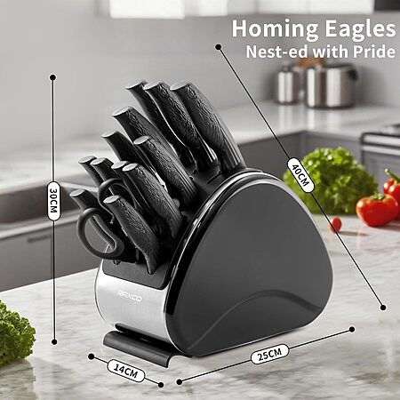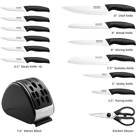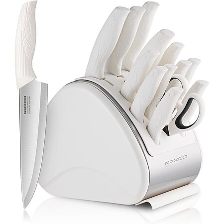 15-Piece RAXCO Stainless Steel Kitchen Knife Set w/ Storage Block (2 colors) on sale for $37.99 -