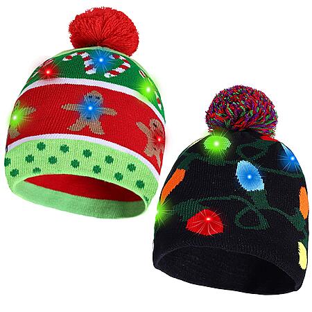 2 Pack Christmas LED Light-up Knitted Beanie Hat Colorful with 3 Flashing Modes for Holiday Xmas Christmas Party Supplies(One Size Fits More) - $12 $11.97