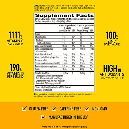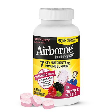 Model: Airborne 1000mg Vitamin C with Zinc, Immune Support Supplement with Powerful Antioxidants Vitamins A C & E - 116 Chewable Tablets, Very Berry Flavor