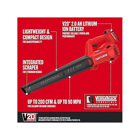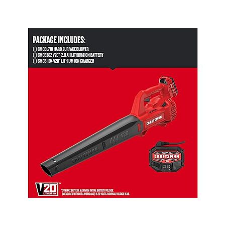 $39.99: CRAFTSMAN 20V MAX Cordless Leaf Blower Kit with Battery & Charger Included (CMCBL710D1) Red at Woot!
