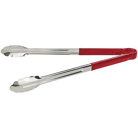 Model: Winco 16" Stainless Steel Serving Tongs with Plastic Handle, Red
