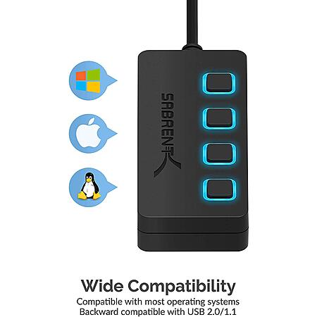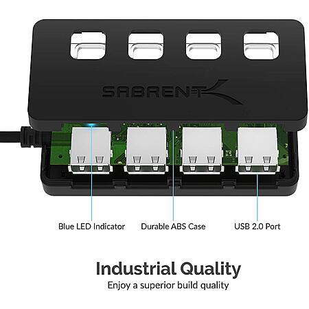 $6.76*:SABRENT 4 Port USB 2.0 Data Hub with Individual LED lit Power Switches [Charging NOT Supported] for Mac & PC (HB-UMLS)