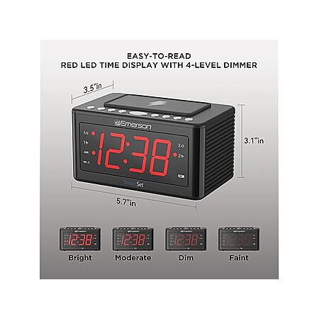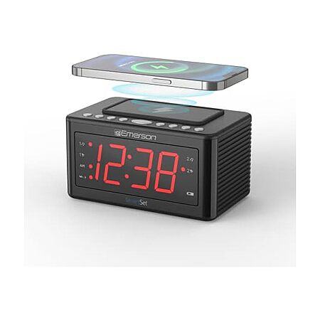 Emerson CKSW0555 Smartset Wireless Charging Alarm Clock Radio - Featuring a Large 1.4" Red LED Display and Temperature Sensor, FM Radio, $11.99, FS for Prime, Woot!