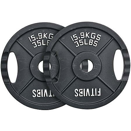 Signature Fitness 2-Grip 2" Olympic Cast Iron Weight Plates: 2x 35-Lb