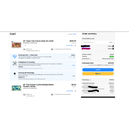 If you speak with a Samsung rep via chat, they will throw in a free bezel and 2 year warranty on top of the already 50% discounted Samsung frame. You just have to ask them for it. I tried to also add a older TV trade in but they won't let me add more than 2 offers.