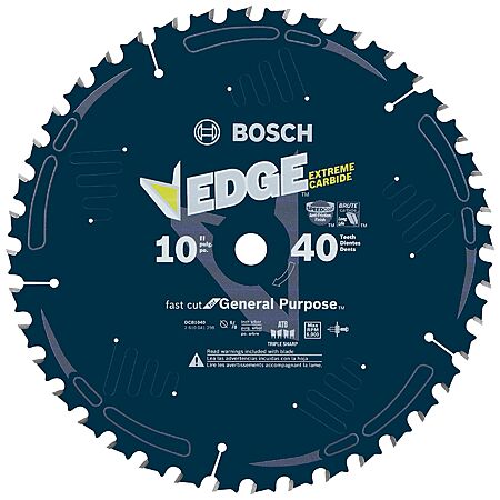 Bosch Edge Circular Saw Blades start sharp, stay sharp and resist impact damage for long life. They are designed for tough construction jobs, because they are engineered with Brute Carbide, an upgraded C3/C4 micrograin carbide formulation that increases impact resistance. They have face-ground teeth for clean cuts. They also feature ultra-sharp post-paint grinds to stay sharper longer and to resist impact damage. To avoid warping, these blades have been built with expansion slots. These blades also feature control cut shoulders to reduce kickback, and they have body slots for excessive heat.