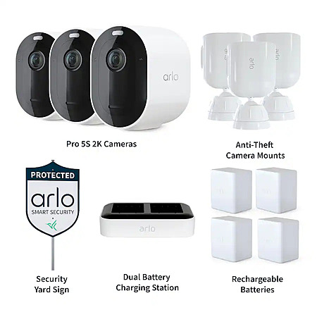 Arlo - Pro 5S 2K 3 Camera Indoor/Outdoor Wireless Spotlight Security Camera Bundle - White $120.99