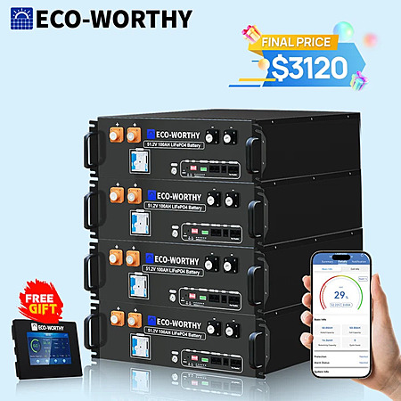 4-Pack ECO-WORTHY 48V 100Ah LiFePO4 Batteries + 48V Battery Monitor $3119.99 + Free Shipping