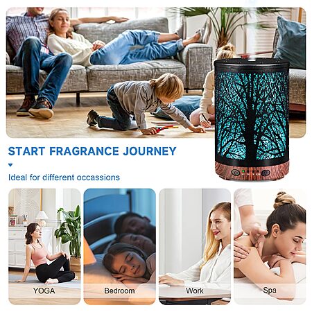 JOYOLO Essential Oil Diffuser 120ML Metal Aromatherapy Diffuser, Cool Mist Humidifier with Auto Shut-Off Protection 7 Color Lights for Home Office Spa (Tree) $14.44