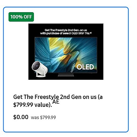 Samsung EPP: 65'/77'/83' Inch Class OLED S95F + Free Samsung The Freestyle 2nd Gen Projector Starting at $1954.99