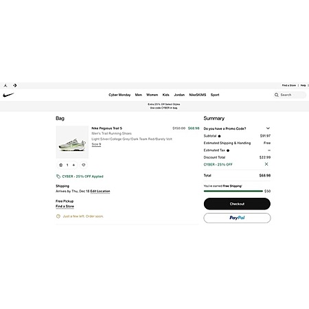 Nike Men's Pegasus Trail 5 Trail Running Shoes in White | DV3864-004 $68.98