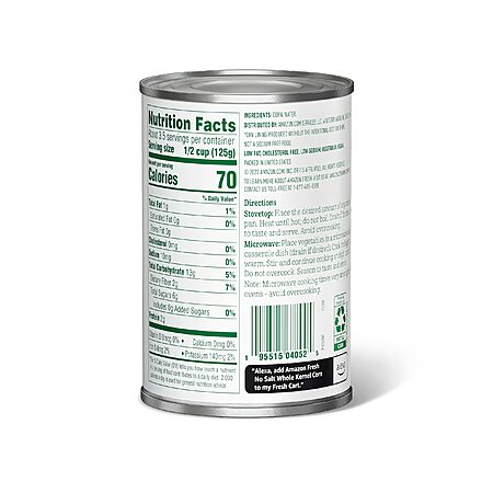 6-Pack 15.25-Oz Amazon Fresh Canned Whole Kernel Corn (No Salt Added) $3.72 + Free Shipping w/ Prime or on $35+
