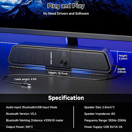 Prime Members: SENZER 2-in-1 Bluetooth RGB Desktop Speaker $9.49 + Free Shipping