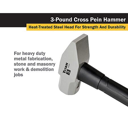 3-Pound Titan Cross Pein Hammer w/ Forged Steel Head & 15.5" Shock Absorbing Fiberglass Handle $12.50 + Free Shipping w/ Prime or on $35+