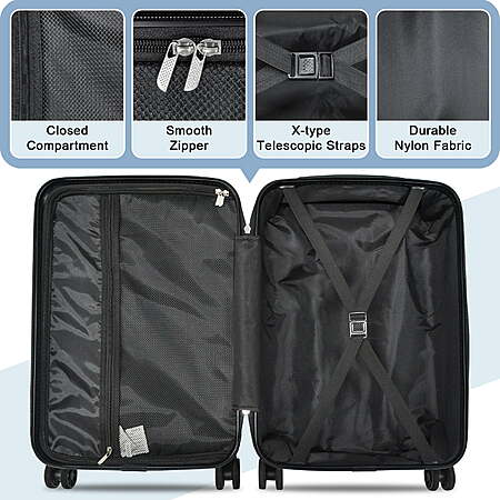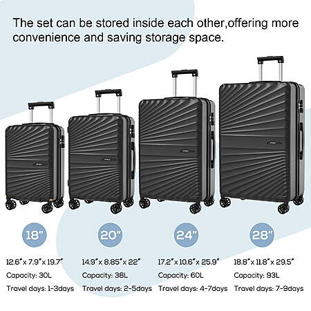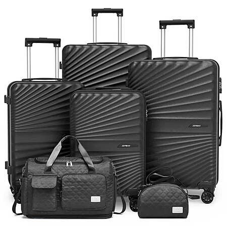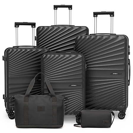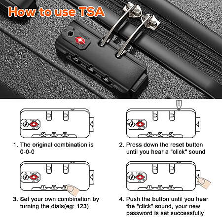 | Product Description: | Joyway luggage is designed for modern travelers with both durability and style, using high-strength ABS (Acrylonitrile Butadiene Styrene) is a thermoplastic resin with high tensile strength. Mainly used in aviation products and high-end luggage. It has the characteristics of light weight, softness, strong flexibility, and not easy to deform. Anti-impact, anti-fall, explosion-proof, waterproof, and anti-collision, and can rebound immediately afterwards to protect the luggage. Lightweight and durable. Let you go anywhere with ease and confidence. Product Introduction: 18" : L12.4' W' 8.46' H' 18.3' Weight: 6lb - Capacity: 35L 20" : L14.1' W' 9.44' H' 21' Weight: 8.8lb - Capacity: 45L 24" : L16.5' W' 11' H' 25' Weight: 10lb - Capacity: 70L 28" : L18.5' W' 12.4' H' 28.7' Weight: 12.12lb - Capacity: 100L HOW DO I RESET THE COMBINATION LOCK 1.The lock is set to 0-0-0 at the factory. 2.Locate the reset button adjacent to the dials, push it and hold while you rotate the dials to your desired 3-digit code. 3.Release the reset button and your code is now set. 4.Scramble the dials and test your new code to be sure the correct one is set. 【Complete 6-Piece Travel Set】Includes 18" & 20" carry-on suitcases, 24" & 28" checked suitcases, one travel bag, and one toiletry bag. This full set provides the perfect combination for all types of trips—business, vacation, or weekend getaways. 【Durable & Lightweight ABS Shell】Made from premium ABS material that’s impact-resistant, scratch-resistant, and lightweight. Each suitcase is rigorously tested to ensure strength and long-lasting performance for every journey. 【TSA-Approved Lock & Reinforced Zippers】Stay protected with TSA-approved combination locks that allow airport security checks without damage. Anti-piercing zippers add an extra layer of safety and keep your belongings secure and private. 【360° Spinner Wheels for Easy Mobility】Smooth-rolling double spinner wheels offer effortless 360° maneuverability. Each wheel is tested for shock, durability, and quiet operation—ensuring a stable glide even on rough surfaces. 【Adjustable 3-Step Telescoping Handle】Ergonomically designed handle adjusts to your preferred height for easy control and comfortable handling. It retracts neatly for storage, making this set both practical and stylish—an ideal travel companion or gift for women of all ages. |