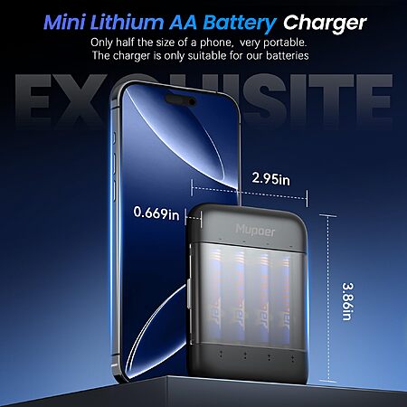 Mupoer Rechargeable Ultra Thin Battery Charger (Ultra Thin Charger +4AA3600mWh) on sale for $11.99 - 50% off when you enter the coupon code
