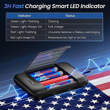 - 2500 Cycle Life 0V Activation:Rechargeable aa batteries can be charged up to 2500 times, with no memory effect and low discharge rate, saving you a lot of money. Even if the battery is out of power and the voltage is 0V, the charger can directly activate the refresh battery for charging