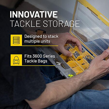 • FITS 3600 SERIES TACKLE BAGS: Specially designed to stack multiple units. Ribbed lid and base and steel-pin hinges offer durability and easy grip at home and on the water."