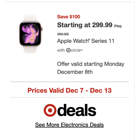 | Product Description: | Introducing Apple Watch Series 11. With hypertension notifications,¹ sleep score, speedy 5G,² and up to 24 hours of battery life.³ Legal Apple Watch Series 11 requires iPhone 11 or later with iOS 26 or later. ¹Hypertension notifications are not intended for use by people under 22 years old, those who have been previously diagnosed with hypertension, or pregnant persons. ²Data plan required. 5G is available in select markets and through select carriers. Speeds vary based on site conditions and carrier. For details on 5G support, contact your carrier and see apple.com/watch/cellular. ³Battery life varies by use and configuration. See apple.com/watch/battery for more information. ⁴Requires an Apple Intelligence–enabled iPhone nearby and Bluetooth headphones with device and Siri language set to English. Apple Intelligence is available in beta. Some features may not be available in all regions or languages. For feature and language availability and system requirements, see support.apple.com/en-us/121115. ⁵The ECG app is available on Apple Watch Series 4 and later (excluding Apple Watch SE models) and can generate an ECG similar to a single-lead electrocardiogram. Intended for use by people 22 years old or older. ⁶Irregular rhythm notification requires the latest versions of watchOS and iOS. It is not intended for use by people under 22 years old or those who have been previously diagnosed with atrial fibrillation (AFib). ⁷Sleep apnea notifications are available on Apple Watch Series 9 and later, Ultra 2 and later, and SE 3. The feature is intended to detect signs of moderate to severe sleep apnea for people 18 years old or older without a diagnosis of sleep apnea. ⁸The Vitals app is for wellness purposes only and not for medical use. ⁹The Blood Oxygen app is for wellness purposes only and not for medical use. Measurements are calculated and viewed on iPhone in the Health app. ¹⁰Apple Fitness+ requires a subscription. ¹¹Fast charging is compatible with Apple Watch Series 7 and later, any Apple Watch Ultra model, and Apple Watch SE 3. ¹²Apple Watch Series 11 is 2x more scratch resistant compared to earlier models. ¹³Apple Watch Series 11 has a water resistance rating of 50 meters under ISO standard 22810:2010. This means that it may be used for shallow-water activities like swimming in a pool or ocean. Apple Watch Series 11 should not be used for scuba diving, waterskiing, or other activities involving high-velocity water or submersion below shallow depth. Water resistance is not a permanent condition and can diminish over time. For additional information, see support.apple.com/en-us/109522. Apple Watch Series 11 is rated IP6X dust resistant. ¹⁴Emergency SOS requires a cellular connection or Wi-Fi calling with an internet connection from your Apple Watch or nearby iPhone. You can use cellular models of Apple Watch to make an emergency call in many locations, provided that cellular service is available. Some cellular networks may not accept an emergency call from your Apple Watch if your Apple Watch isn’t activated, if it isn’t compatible with or configured to operate on a particular cellular network, if isn’t set up for cellular service, or if the cellular network does not support emergency calling over IMS. See support.apple.com/108374 and apple.com/watch/cellular for more information. ¹⁵Wireless service plan required for cellular service. Contact your service provider for more details. Connection may vary based on network availability. Check apple.com/watch/cellular for participating wireless carriers and eligibility. See support.apple.com/HT207578 for additional setup instructions. Technical specifications Go to apple.com/watch/compare for complete set. |