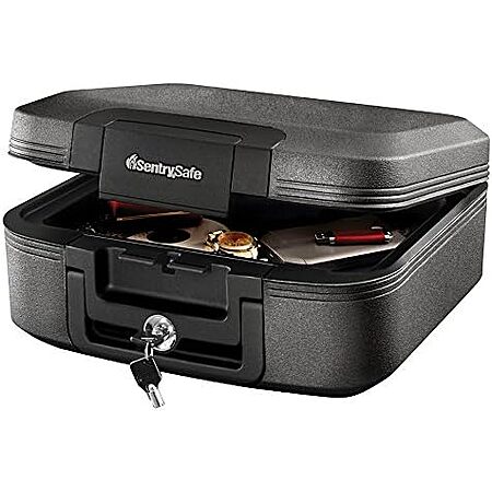 Model: SentrySafe Charcoal Gray Fireproof and Waterproof Safe Box with Key Lock, Portable Chest for Money, Passport, 0.28 Cubic Feet, 6.6 x 15.4 x 14.3 Inches, CHW20221