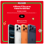 New Verizon Customers: 4 Lines Unlimited Plan + 4x 256GB iPhone 17 Pro/Galaxy S25+