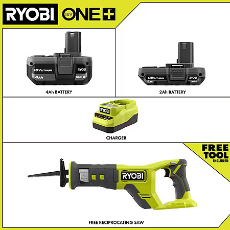 Ryobi ONE+ 18V Lithium-Ion Kit with 2.0 Ah and 4.0 Ah Batteries, Charger & 18V Cordless Reciprocating Saw $79 + Free Shipping
