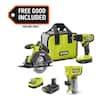 Backed by the RYOBI 3-Year Manufacturer's Warranty, the 18V ONE+ 2-Tool Combo Kit includes (1) PCL206 18V ONE+ Cordless 1/2 in. Drill/Driver, (1) PCL500 18V ONE+ Cordless 5-1/2 in. Circular Saw, 18T Carbide Blade, Hex Wrench, (2) 18V 1.5 Ah Lithium-Ion Batteries, Charger, Bag, and ONE+ Cordless Compact Router.