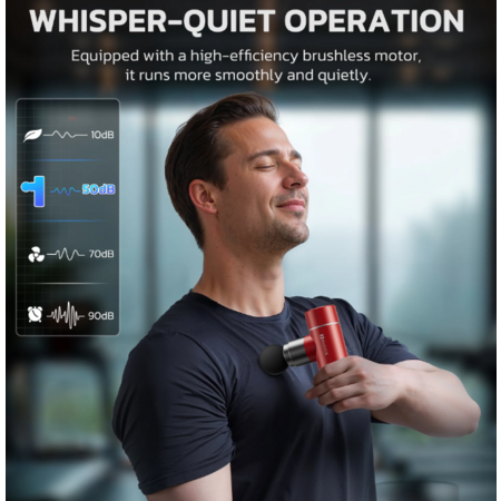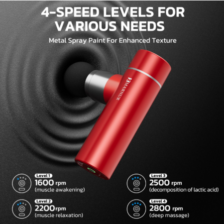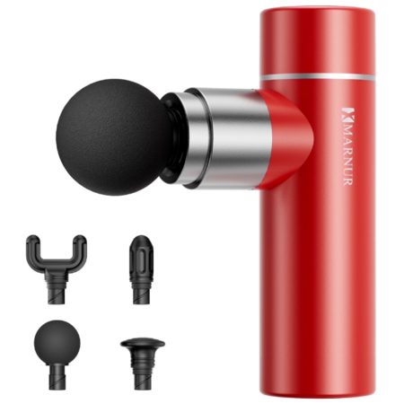 Model: MARNUR Mini Massage Gun, Portable Handheld DeepTissue Massager, Quiet & Lightweight Palm, Sized Design, Red