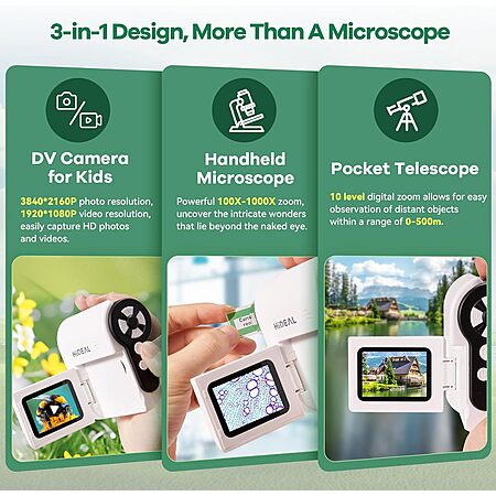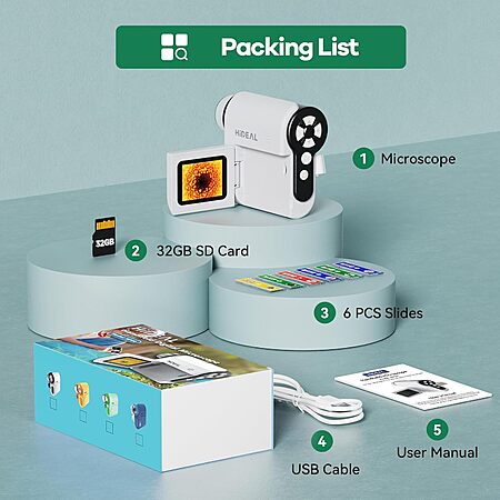 Prime Members: Hideal 3-in-1 Kids Rechargeable 2" HD IPS 1000x Magnification Microscope w/ 32GB micro SD (White) $15.89 + Free Shipping w/ Prime or on $35+