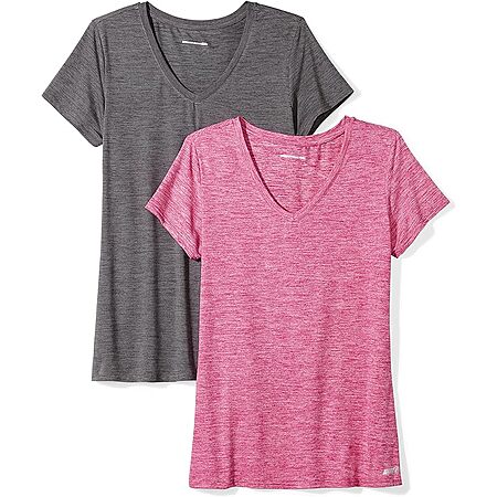 2-Pack Amazon Essentials Women's Active Quick Dry Tech Stretch V-Neck T-Shirt