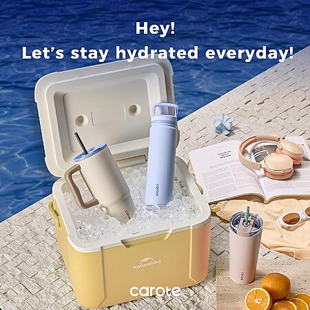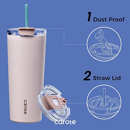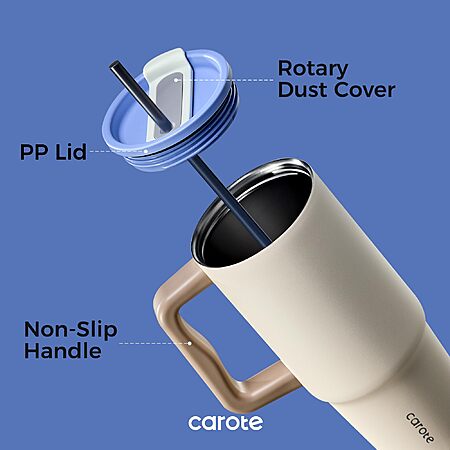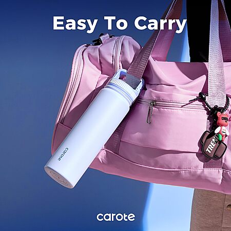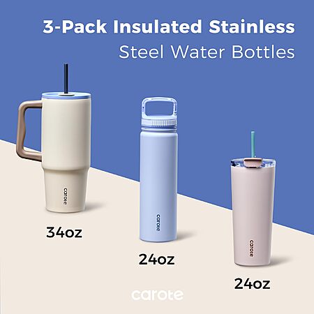 $19.99 - CAROTE 3-Pack Insulated Stainless Steel Water Bottles with Upgraded Leakproof Tech, Travel Coffee Tumplers with Straw, 34/24/24 oz (Blue or Purple)