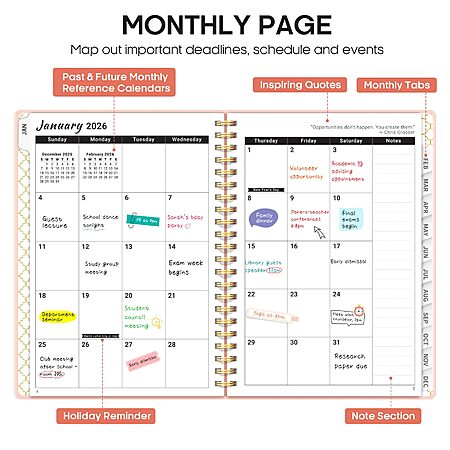 2026 Planner, Weekly and Monthly Calendar Planner, January 2026 - December 2026, Hardcover 2026 Calendar Book with Tabs For Women & Men, Inner Pocket, Spiral Bound $5.69