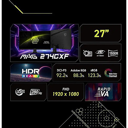 27" MSI MAG 274CXF 1920 x 1080 280 Hz Curved Monitor $128 + Free Shipping