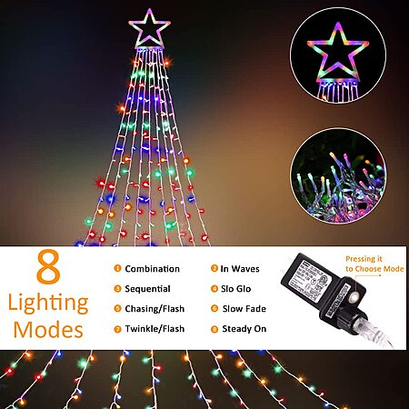 MINIAO Christmas Star 320 LED 11.5 ft Waterfall Tree Lights w/ 8 Modes $9.99 + Free Shipping w/ Prime or on $35+