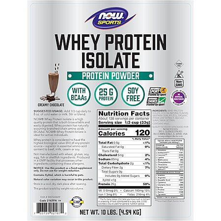 10-Lbs NOW Sports Whey Isolate Protein Powder (Creamy Chocolate, 138 Servings) on sale for $120.39 - $24.08 off when you 'clip' the coupon on the product page - $6.02 (5%) off when you check out via Subscribe & Save =