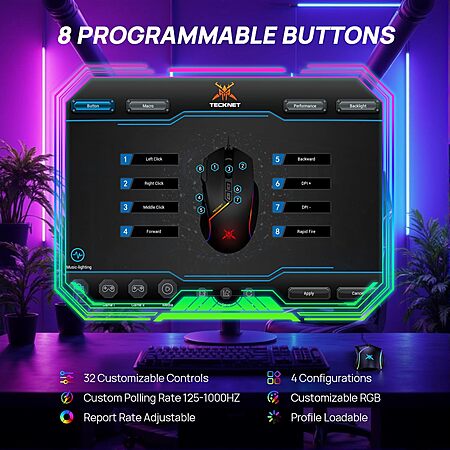 Prime Members: TECKNET RGB 12800 DPI 8-Button Wired Optical Gaming Mouse