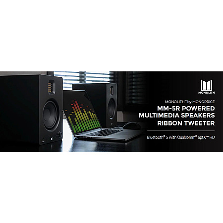 Pair - Monolith by Monoprice MM-5R Powered Multimedia Speakers Ribbon Tweeter Bluetooth w/ Qualcomm aptX HD Audio - $279.99 + Free Shipping