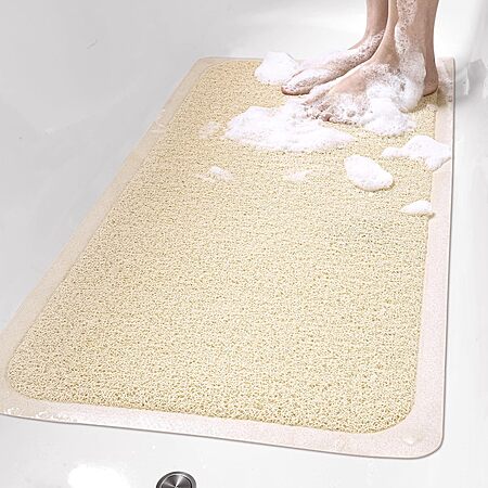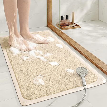 Product Description from Amazon:- Non-Slip & Durable Material: Made from high-quality PVC, our bath mat for tub non slip offers superior anti-slip performance. Unlike some other mats that may shift during use and could potentially damage your bathtub or floor, this mat features durable plaid backing that stays securely in place. Whether you're in the bathroom, by the pool, or in wet public spaces like restaurants, hospitals, swimming pools, or schools, it provides reliable safety to prevent slipping.