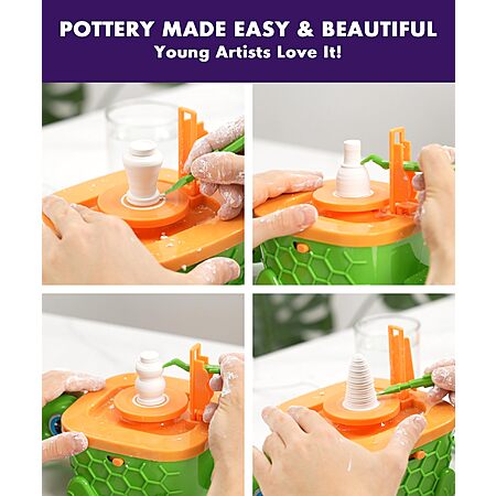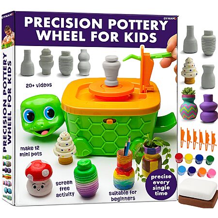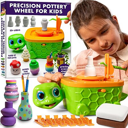 Precision Mini Pottery Wheel & Complete DIY Pottery Studio Kit for Kids w/ High Power Motor & Air Dry Clay (12 Mini Projects, Ages 8-12) $9.99 + Free S/H w/ Prime or on $35+