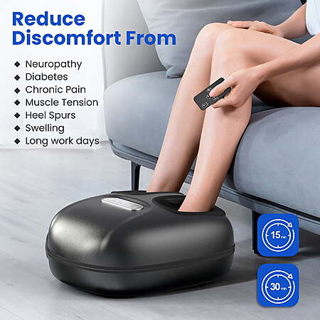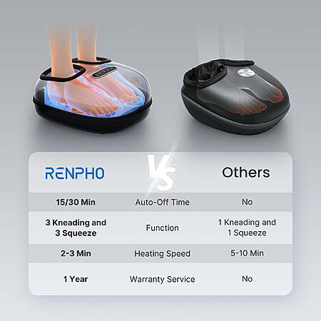 | Product Description: | Renpho Shiatsu foot massager therapy for foot with heat kneading rolling air compression Helps bring pain relief and works to improve circulation,Adjust its heat settings based on your needs Treat your tired toes with a stimulating massage that quietly soothes tension from headaches, insomnia, stress 3 kneading and 3 squeeze intensities that can be adjusted to suit your personal preference You'll be able to enjoy spa grade massages in your own home,it is a perfect way to save money and time No need going to the spa, massage parlor, or salon. Enjoy a light or deep massage with kneading Increase stimulation and blood flow,to promote better health and detox the body by improving overall blood circulation. Renpho foot massager Advantages Products: Relieve foot pressure, plantar fasciitis and neuropathy pressure, allowing the foot to relax. Relieve foot fatigue and improve sleep quality. Reflexology from the comfort of home and office. It is the best choice for plantar fasciitis/foot pain/office workers/people who stand for a long time/elderly/sports enthusiasts or athletes/women wearing high heels/people with leg disabilities. The best gift for mom, dad, grandpa, grandma, wife, husband, and children. Knead Intensity /Air Intensity /Heat Various functions Full-scale massage from heel to toe, full body relaxation. 15/30 minutes automatic shut-off timer is safer to use. Can be purchased with FSA/HSA account. Polyester material and removable shoe cover for easy cleaning. Remote controller is more friendly to people with limited mobility. 1-year warranty. Focus on Foot Health: The Renpho foot massager fully rotates and rolls to deliver the precision deep kneading and shiatsu massage you deserve. Heating and squeezing can helps with neuropathy Stress relief for feet, deep nerves, joints, and acupuncture points. Improve blood circulation. Customizable Massage Settings: foot massager with heat has 3 kneading speeds and 3 squeezing intensities, all adjustable independently, the plantar fasciitis relief foot massager can provide a full range of massages from heel to toe. Start with the lowest setting, and stop using if any discomfort occurs, Over time, as you get used to the massages, the pain in your feet may lessen, and you may feel better. Fast Soothing Heating improves sleep quality: The foot massager for neuropathy can heat up to 122℉ (51℃). An ideal warmth for cold and stiff feet, alleviating foot fatigue and improving sleep quality. Humanized design, more convenient and safe:Use remote control for easy access and operation, no need to bend down to reach the panel, making it the best choice for seniors. The foot warmer includes a 15/30 min auto-off timer to protect against excessive heat and pressure. Removable foot covers allow for easy cleaning and hygiene. Ideal gift: This foot massager can make an ideal gift for people of all ages on occasions like birthdays, Mother's Day, Father's Day, Thanksgiving. HSA FSA eligible items only: Renpho foot massager can be purchased through your FSA/HSA account. Specific: Material:Polyester Power Source:Corded Electric Item Weight:6.39 Pounds Intensity Level:Three adjustable intensities, Knead Intensity /Air Intensity /Heat Various functions Timer function:15 minutes and 30 minutes Special Design: Light weight &Portable &washable Liners &Non-slip Rubber pad Product Dimensions : 13.19 x 7.48 x 15.35 inches |